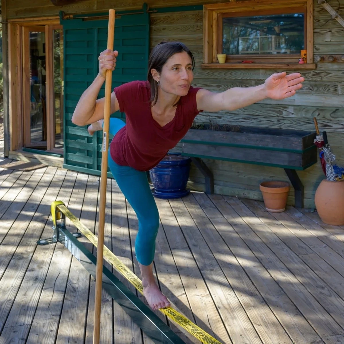 Slacklinen zelfs als het buiten regent? Zonder elke keer de slackline te moeten opzetten? In de winter? Voor het werk?